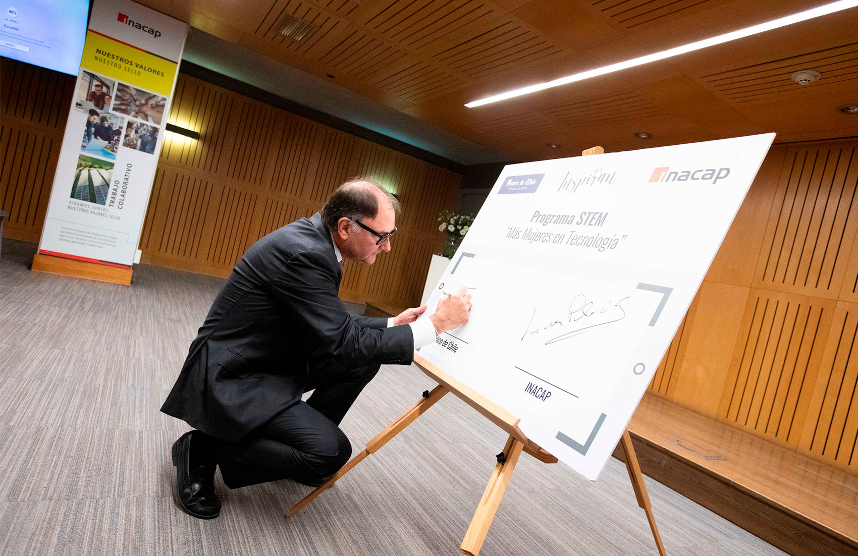 Lucas Palacios, Rector de INACAP, comentó que hace dos años vienen desarrollando un Programa STEM que incluye una Red colaborativa formada por distintas instituciones y una beca para todas las mujeres que quieran estudiar una carrera tecnológica en su Centro de Formación Técnica. En esa misma línea, Palacios explicó que la alianza con Banco de Chile viene a fortalecer su compromiso de acompañar a las alumnas más allá de sus años de estudio. “La educación, y en especial la educación técnico profesional, cumple un rol fundamental en brindar oportunidades, pero muchas veces no basta con una beca para que una estudiante efectivamente se titule e ingrese al mundo del trabajo, por eso estamos muy contentos de contar con un acompañamiento que promueva además la inserción laboral”.