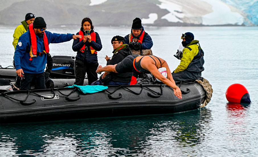 Fueron 45 minutos y 50 segundos de nado sin traje de neopreno ni grasa protectora en las gélidas aguas que circundan la Base Naval Capitán Arturo Prat, en la denominada Bahía Chile, en la isla Greenwich del archipiélago de las Shetland del Sur. La “Sirena de hielo”, como es conocida mundialmente, conquistó este hito llevando a su organismo al límite, al punto que salió del mar con una hipotermia severa. “Sentí que pude haber muerto”, comentó la deportista y psicóloga en una entrevista.