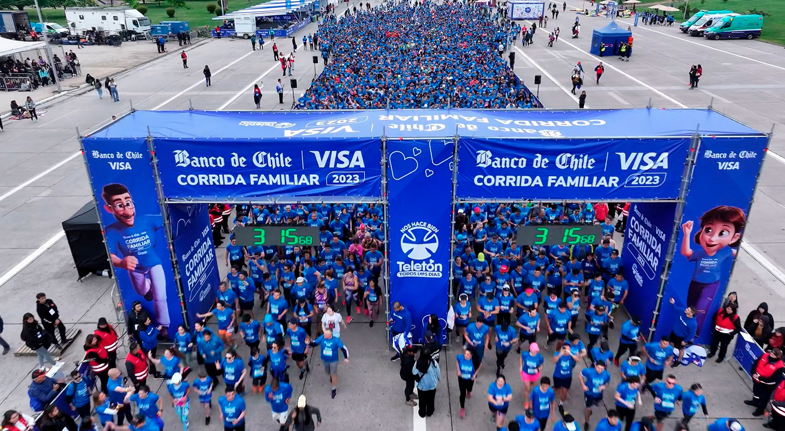 Los deportistas, especialmente los runners, tampoco quedarán al margen y este año se desarrollará una nueva versión de la tradicional corrida familiar Banco de Chile-Visa, que se realizará el sábado 9 de noviembre en el Parque O’Higgins, lugar donde Banco de Chile habilitará cajas auxiliares y “Voluntarios Móviles” para recibir sus aportes. Presentaciones musicales y masivas clases de zumba son parte del ambiente de esta carrera familiar e inclusiva. Próximamente se informará sobre la plataforma para realizar las inscripciones.