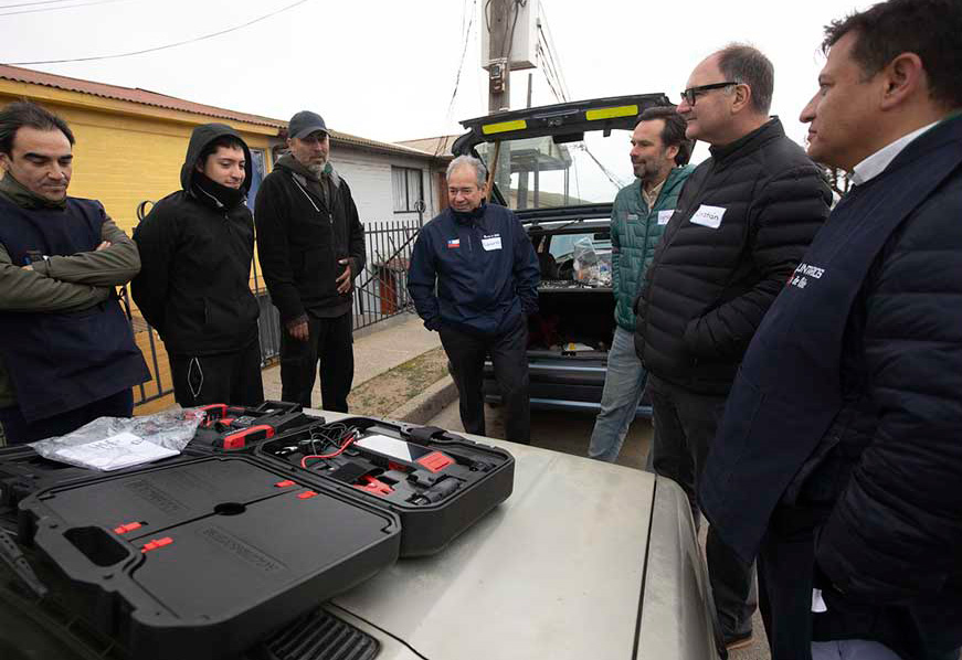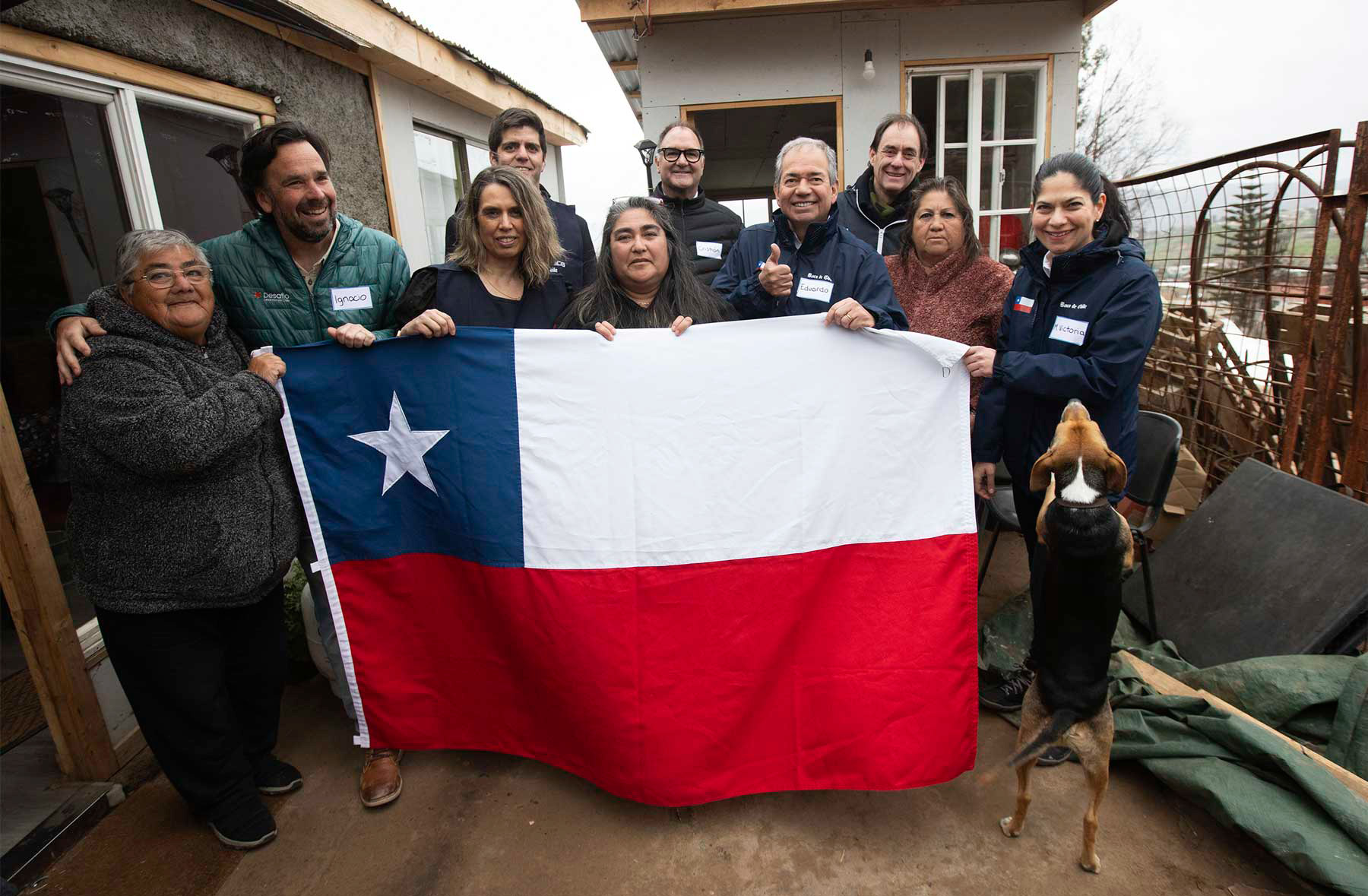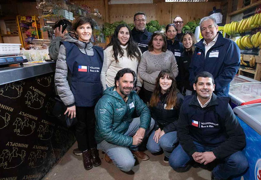 Eduardo Ebensperger O., gerente general; Cristián Lagos C., gerente de la División Personas y Organización, y María Victoria Martabit B., gerente de Asuntos Corporativos y Desarrollo Sostenible, y un equipo de voluntarios de Banco de Chile, visitaron la zona y fueron testigos de la fuerza y las ganas de salir adelante de tres emprendedores: Francisca Iribarra (pastelería), Guillermina Morales (comercio) y Ángel Mollo (mecánica), que recibieron este apoyo del banco.