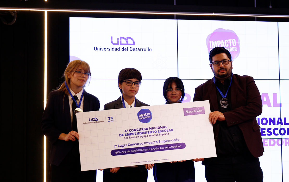 Con esta cuarta edición, el Concurso Nacional de Emprendimiento Escolar Impacto Emprendedor consolida su objetivo de impulsar el talento en colegios y promover soluciones innovadoras con impacto social. La alianza colaborativa entre la Universidad del Desarrollo y Banco de Chile reafirma el compromiso de ambas instituciones con la formación de nuevas generaciones de emprendedores, capaces de contribuir al desarrollo sostenible del país y de enfrentar con creatividad los desafíos del futuro.