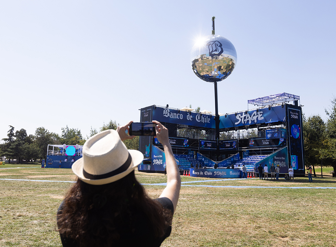 La bola disco será parte del main stand de Banco de Chile Stage. Esta activación de talla mundial es una invitación a reencontrarse con la música en vivo, recuperar la energía colectiva y volver a brillar juntos. En cada reflejo de la esfera, miles de personas se ven multiplicadas, formando parte de una experiencia compartida donde arte y sonido se fusionan en un mismo latido. Los espectadores podrán obtener registros únicos para sus redes sociales.