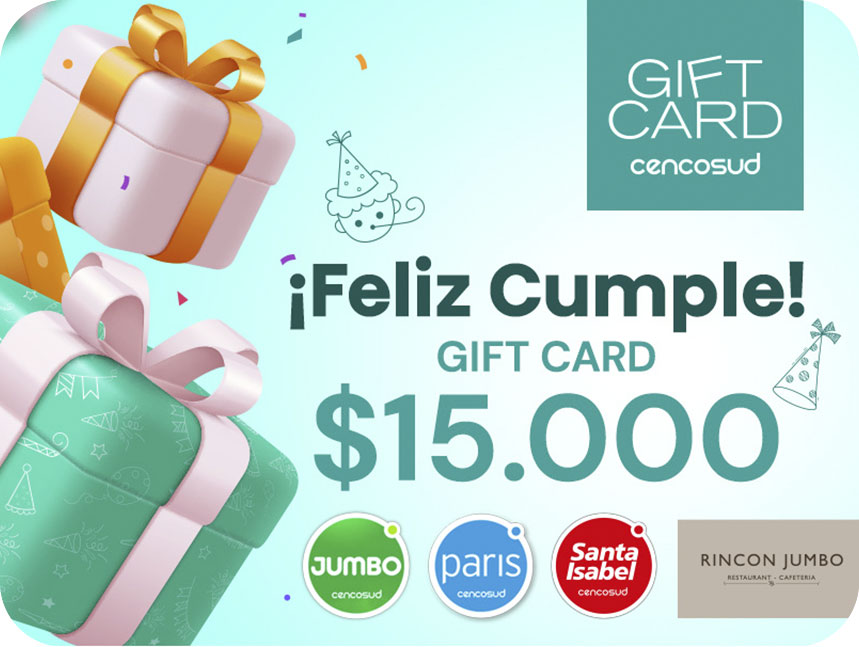 Promoción válida hasta el 31 de octubre de 2025 o hasta agotar stock de 5000 Gift Card disponibles. Usa este código como si fuera dinero en efectivo. Permite complementar el pago con cualquier medio de pago. Válido sobre precios vigentes en cada uno de los comercios informados. Este cupón no es canjeable por dinero en efectivo ni válido para el pago de cuentas. El monto de tu código debe ser usado de una sola vez. El robo, pérdida o extravío es de responsabilidad exclusiva del cliente. Los Códigos pueden ser utilizados, hasta el 30 de septiembre de 2025. Máximo 1 código por cliente. El canje de Dólares-Premio es de responsabilidad de Comercial Promociones y Turismo S.A. sin responsabilidad alguna para Banco de Chile ni en la ulterior atención que ello demande.