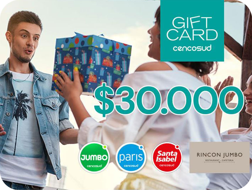 Promoción válida hasta el 30 de junio de 2026 o hasta agotar stock de 5000 Gift Card disponibles. Usa este código como si fuera dinero en efectivo. Permite complementar el pago con cualquier medio de pago. Válido sobre precios vigentes en cada uno de los comercios informados. Este cupón no es canjeable por dinero en efectivo ni válido para el pago de cuentas. El monto de tu código debe ser usado de una sola vez. El robo, pérdida o extravío es de responsabilidad exclusiva del cliente. Los Códigos pueden ser utilizados, hasta el 28 de febrero de 2025. Máximo 1 código por cliente. El canje de Dólares-Premio es de responsabilidad de Comercial Promociones y Turismo S.A. sin responsabilidad alguna para Banco de Chile ni en la ulterior atención que ello demande.