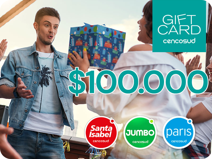 Promoción válida hasta el 31 de octubre de 2025 o hasta agotar stock de 5000 Gift Card disponibles. Usa este código como si fuera dinero en efectivo. Permite complementar el pago con cualquier medio de pago. Válido sobre precios vigentes en cada uno de los comercios informados. Este cupón no es canjeable por dinero en efectivo ni válido para el pago de cuentas. El monto de tu código debe ser usado de una sola vez. El robo, pérdida o extravío es de responsabilidad exclusiva del cliente. Los Códigos pueden ser utilizados, hasta el 30 de septiembre de 2025. Máximo 1 código por cliente. El canje de Dólares-Premio es de responsabilidad de Comercial Promociones y Turismo S.A. sin responsabilidad alguna para Banco de Chile ni en la ulterior atención que ello demande.